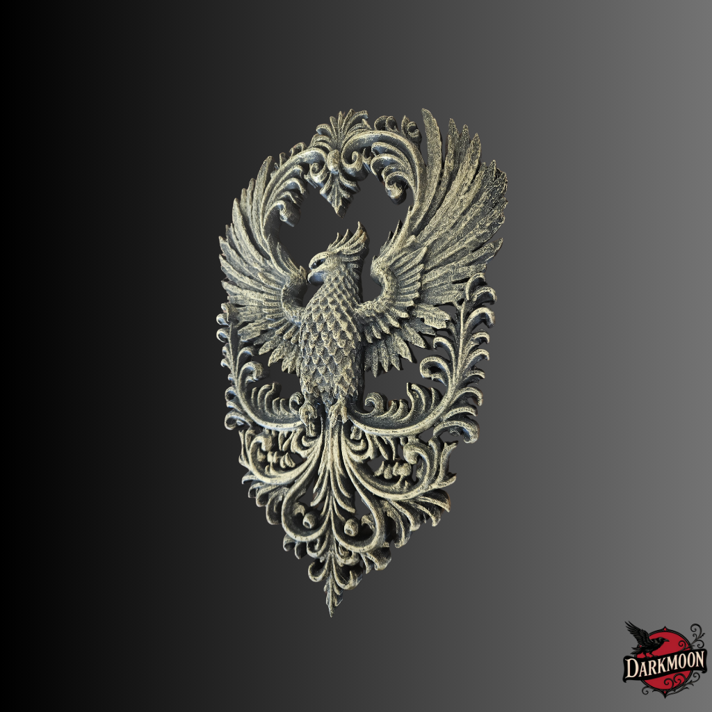 Ignite your space with the majesty of this 3D-printed Phoenix wall hanging. Measuring 295mm tall and 188mm wide, it has been hand-painted in shimmering gold and sealed with a protective varnish for a lasting finish. Perfect for fans of mythical creatures, fantasy décor, or collectors of unique wall art, this striking piece adds a bold and elegant statement to any room.