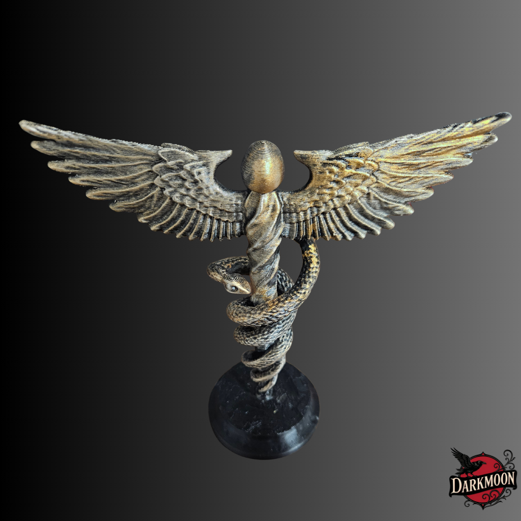 Celebrate the dedication of healthcare professionals with this striking Caduceus Sculpture, a meaningful tribute to those who heal and care. 3D printed in durable black material, each piece is hand-painted in rich bronze tones and sealed with a protective varnish for a lasting finish.
