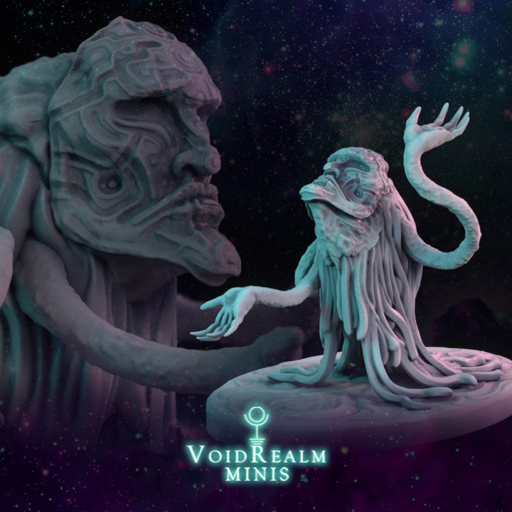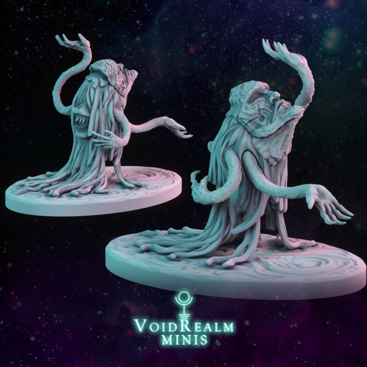 Step into a slumber that’s more nightmare than dream with Dreamcasters, a set of three bizarre resin miniatures that seem pulled from some maddening corner of the void. These small, stony-faced creatures balance on wavy, tendril-like legs, their long, undulating arms weaving, chanting, or casting in impossible gestures.