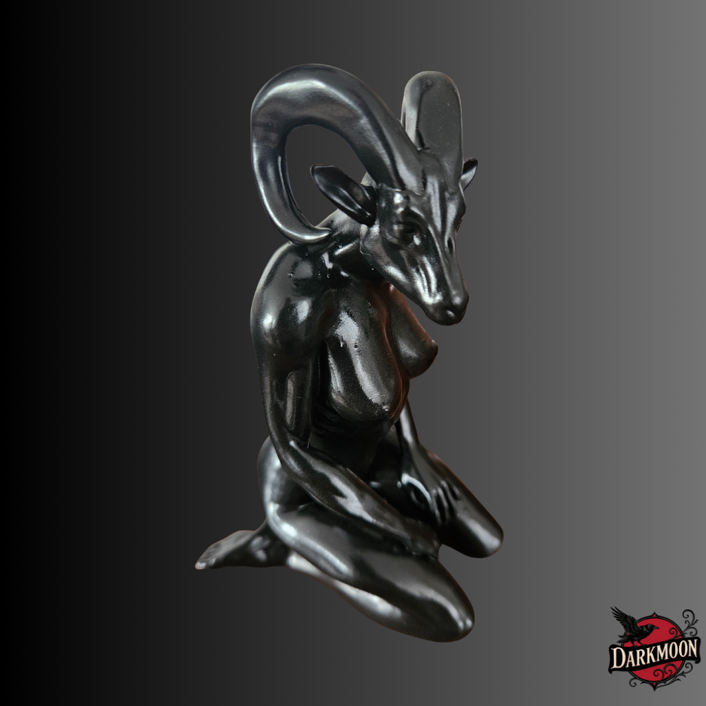 Summon a little chaos into your space with this hand-painted Female Baphomet Lady statue, a striking resin print that celebrates the beautifully profane. Every curve and symbol is meticulously detailed, blending divine femininity with infernal elegance. Whether you’re dressing your altar, enhancing your gothic interior, or simply delighting in the darkly aesthetic, this statue is a statement of rebellion and artistry.