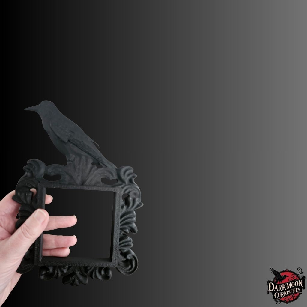 Choose your finish: leave it all in classic black for a dramatic look, or highlight the ornate frame in shimmering silver while keeping the raven black for a bold, contrasting effect. Each piece is made to order and can be customized to suit your gothic décor style.
