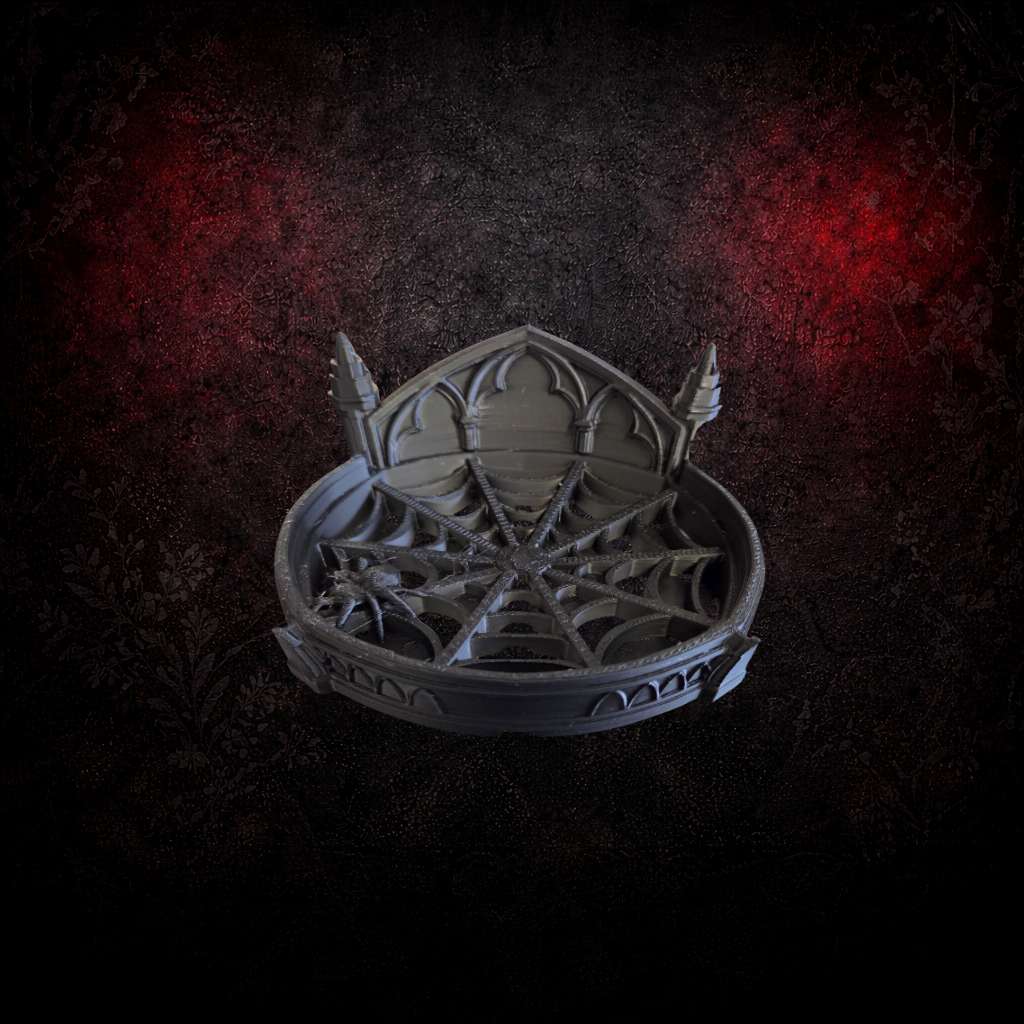 Inspired by gothic cathedral architecture, this dark soap dish features pointed arches and ornate detailing that turn an everyday bathroom item into a small piece of gothic décor. The design adds a subtle architectural touch to sinks, baths, or alternative-styled interiors.