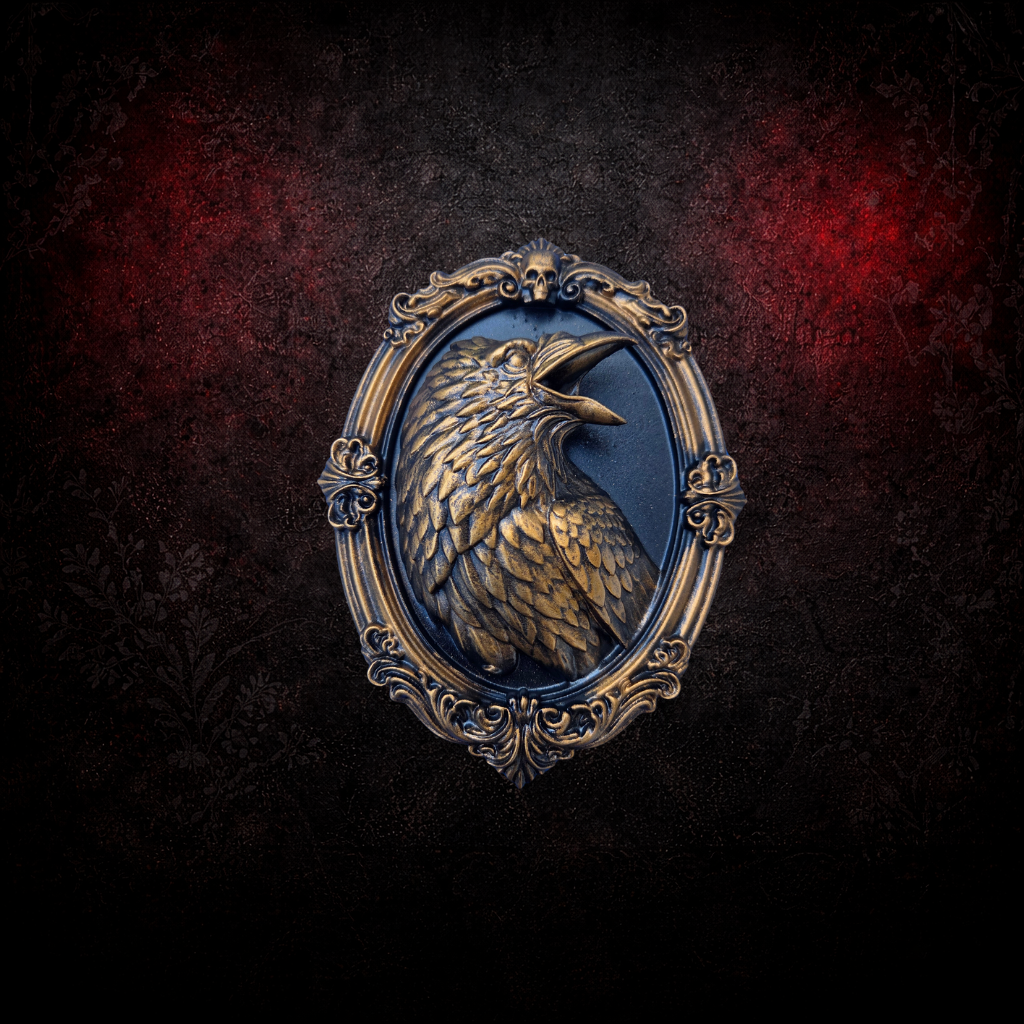 A dark raven sits within an ornate gothic frame, creating a striking piece of macabre wall décor. Inspired by curiosity cabinets and Victorian gothic interiors, this plaque adds a touch of ominous character to shelves, gallery walls or dark-themed rooms.